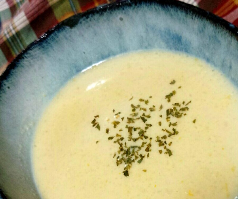 じっくり飴色に炒めた玉葱とホールコーンをブレンダーにかけ、牛乳をたっぷり加えてコトコト煮込んでみました。