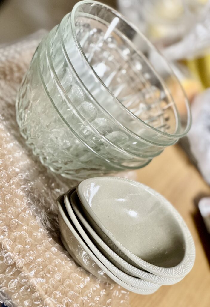 続々と売れているので、気になる方はお早めに!記念にサラダ用のガラス皿と小皿を合計80円で購入しました。