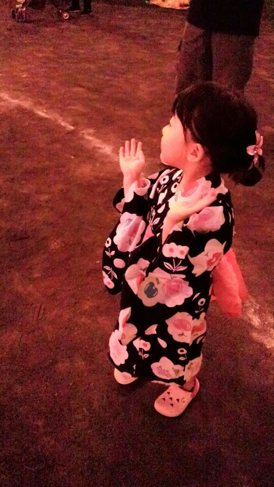 今日も屋台を見に行ったのですが、はしゃぎ過ぎてバランスを崩したひかり。スーパーボール釣りの槽の中で尻餅をついてしまって、びしょ濡れになる…という残念なハプニングが…。