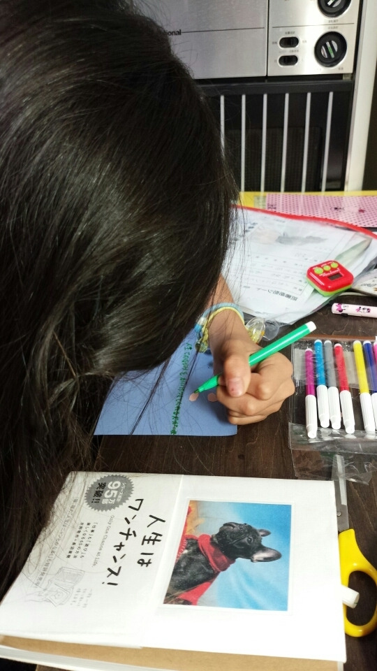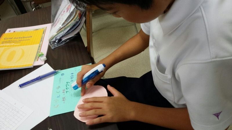 イラストを描いたり、紙を切り貼りしたり、人目をひく工夫を施しています。「クイズ」を書き、貼った付箋の下に答えを書く、というアイディアマンです。
