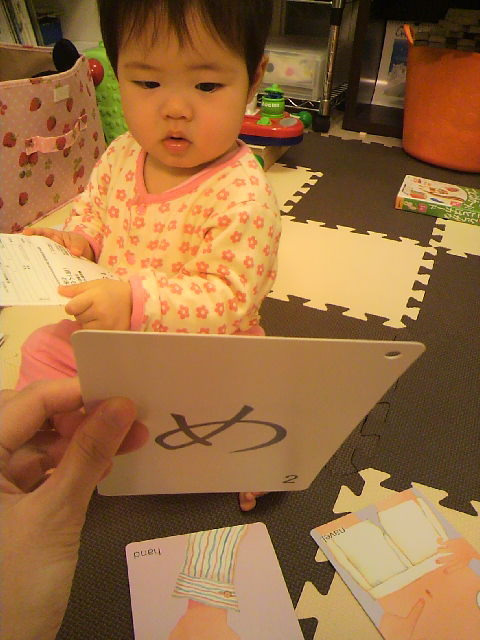 2010/12/28 0歳からの国語学習。 姪の菜々子の国語学習。先週から、新たなカードを使い始めました。 少し大きめです。 楽しそうで良かった♪ 菜々子。あと半月で一歳です。 < 前の記事へ 記事一覧へ > 次の記事へ >