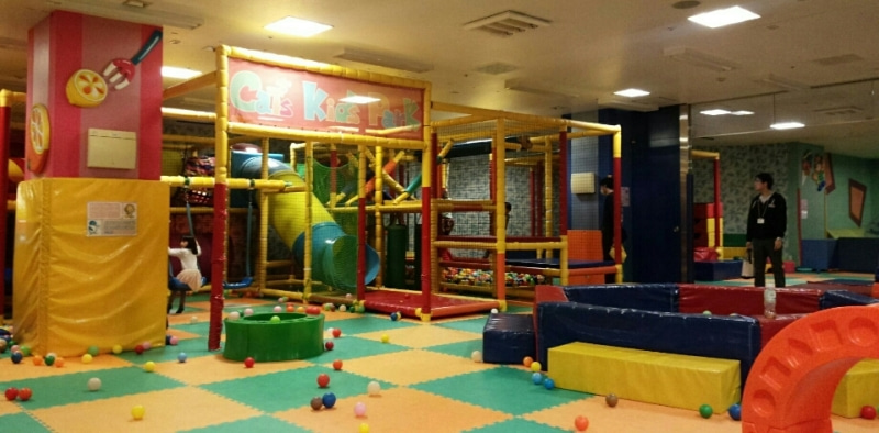 中に入り、キッズコーナーで喜色満面で遊ぶひかり。
