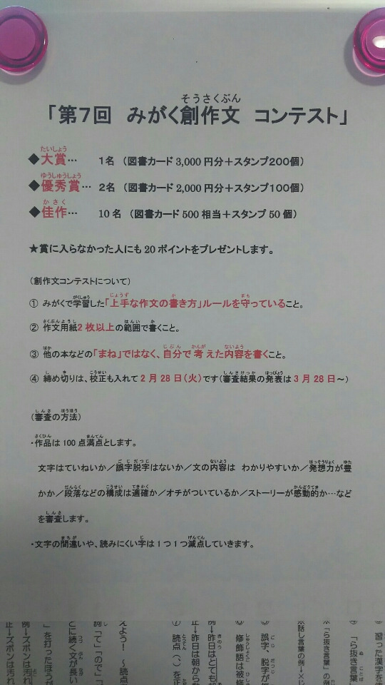 大賞には図書カードとみがくの「頑張りポイント」をプレゼントをするのですが、そのせいか、下書きの段階から生徒の真剣度がいつもとはまるで違います。