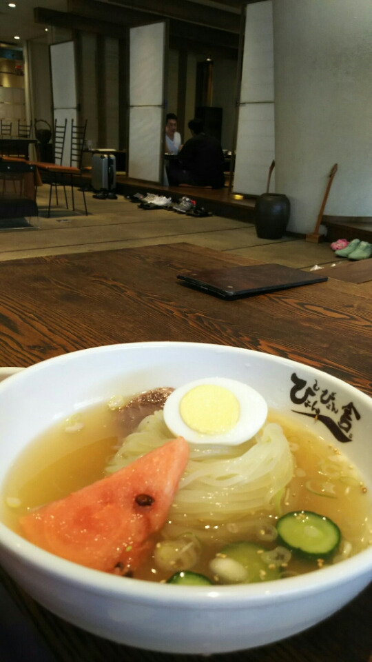 盛岡と言えば冷麺ですよね。ぴょんぴょん舎の冷麺。物凄くコシがあり、つるっとした喉ごし!お店を出る頃には入口に行列が。