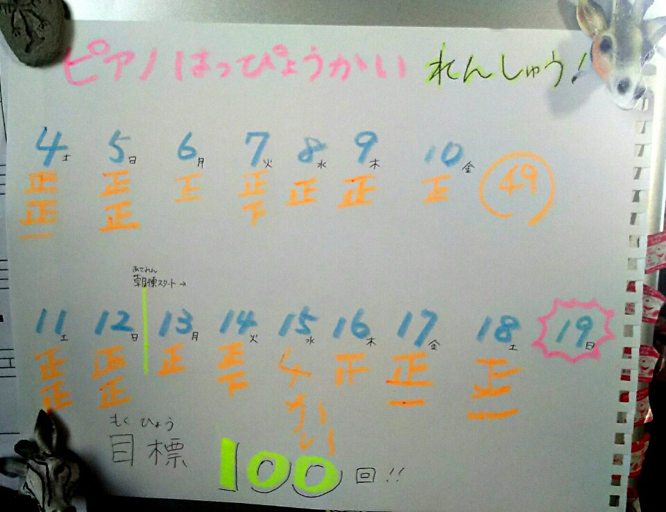 平日は幼稚園に行く前にしか練習できない(お祖母ちゃんの家にはピアノが無い)ので、週末にまとめて練習を重ねてきました。昨年の「きらきら星」と比べると3分半もある長い曲。最後まで間違えずに乗り切ることは至難の技なのです。演奏途中でガクンと寝落ちしたり、何度も同じところを弾く無限ループに突入したり。そんな様子を目の当たりにしていると、音読やダンスなどの比では無いぐらい不安が募ります…。