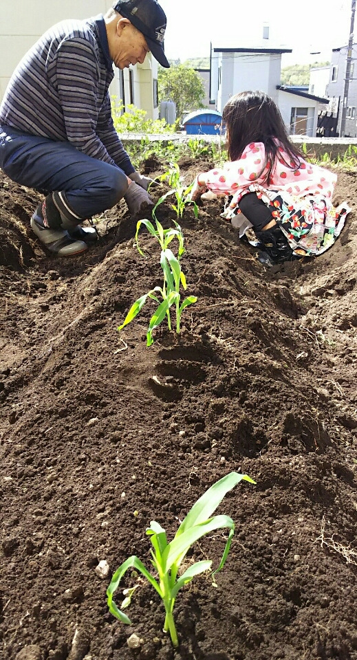 畑らしくなってきました。今シーズンはジャガイモとトウモロコシを作ってみたいと思います。忙しくて手があまりかけられない私たちでも育てやすい野菜だそうです。