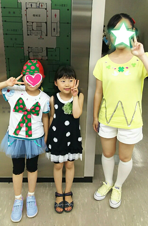 招待してくれた本校のT姉妹と。森の小人をイメージした衣装で演奏していました。