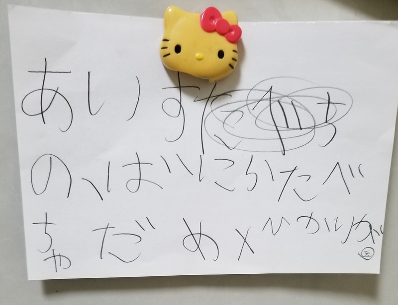 決して忘れないようにと、自戒の念をこめて、娘自ら冷蔵庫に貼ったみたいです(笑)。