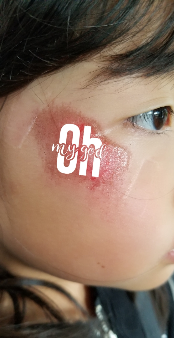 「ひかりちゃん、通学途中に転んで顔に怪我をしました。」