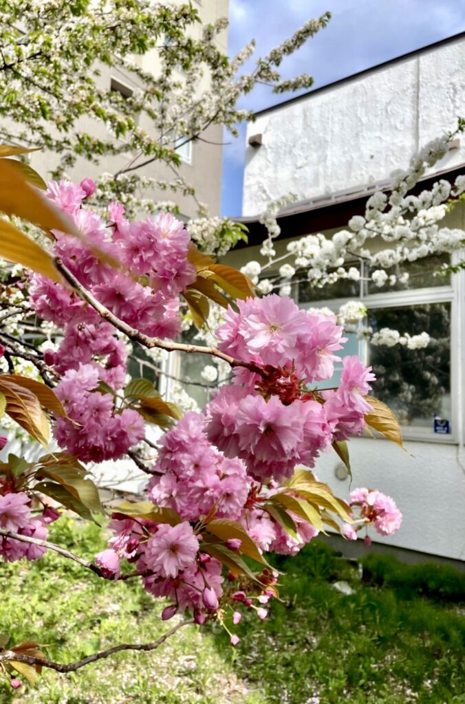 一昨日、本校の清水先生に言われて顔を上げると、満開の桜が目に飛び込んできました。窓越しに見るとまるで1枚の絵画のようで、本当に息を飲む美しさです。